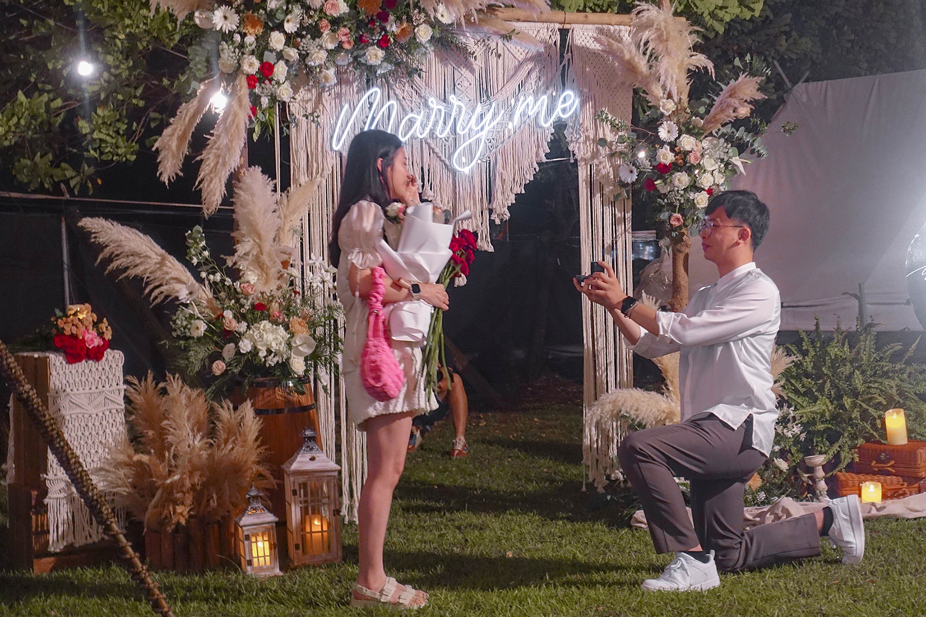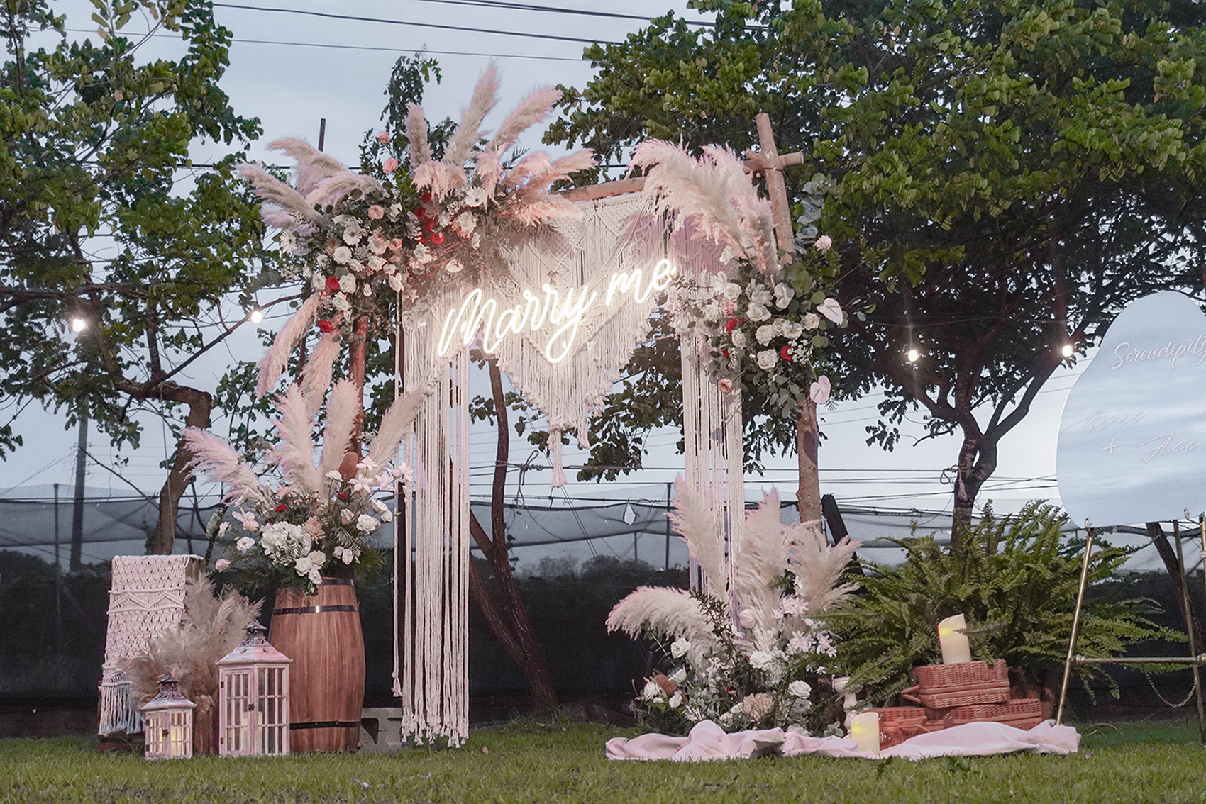 鮮花佈置 花藝設計 戶外求婚佈置 晚上求婚佈置 求婚木拱 求婚道具 波希米亞風佈置 晚上求婚 露營求婚 吾友野事